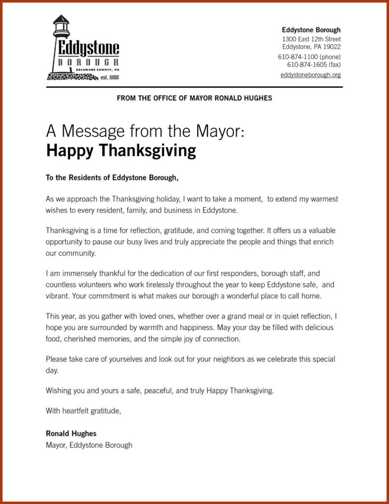 As we approach the Thanksgiving holiday, I want to take a moment, to extend my warmest wishes to every resident, family, and business in Eddystone.