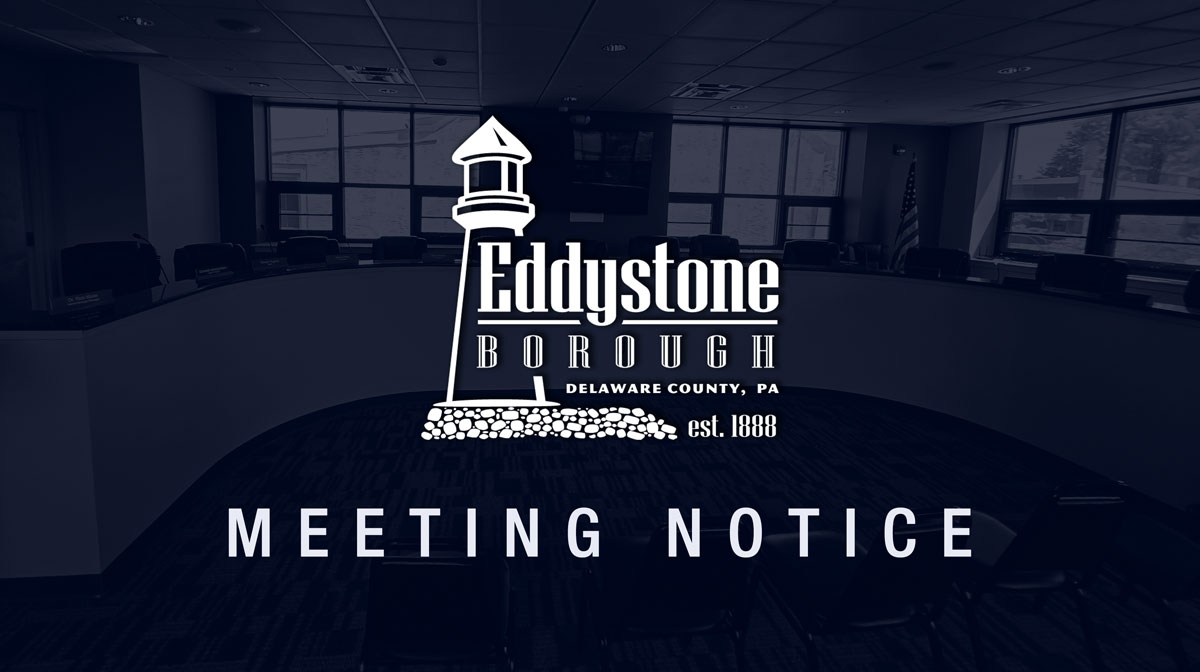 Eddystone Borough Council will hold a meeting on Monday, April 6, 2026, at 7:00 pm.